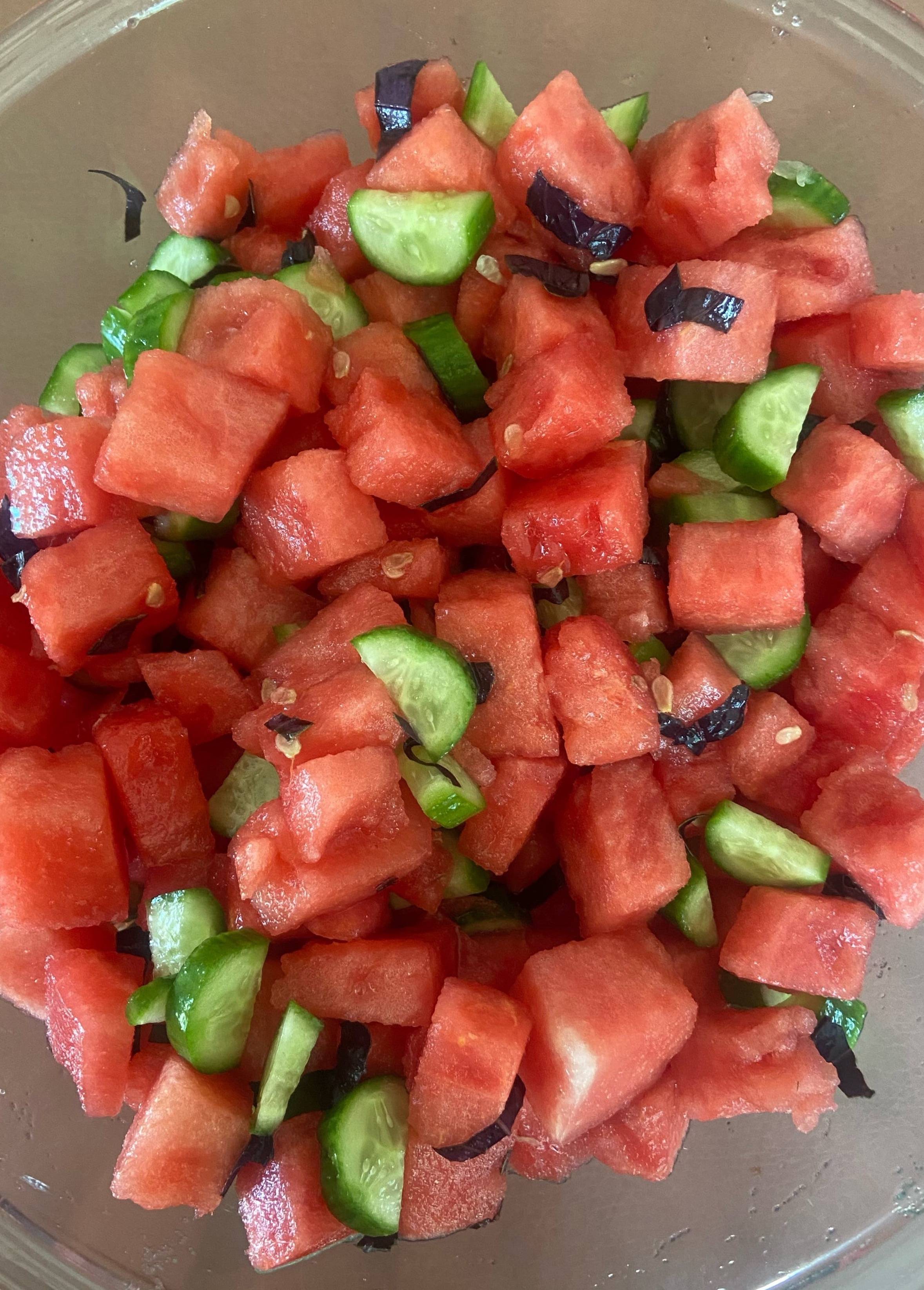 Watermelon Cucumber Salad (makes 4-5 servings) -1 small watermelon, diced